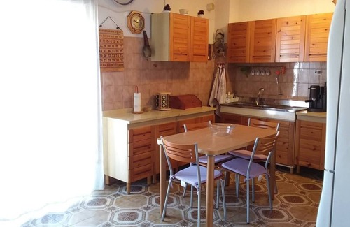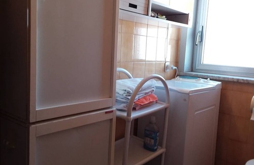 Comfortable and functional apartment to spend your holiday in a quiet residence 150 meters from the sea. The house consists of an entrance to a kitchen with all cooking accessories, fridge + microwave, 1 room with double bed, 1 room 2 + 2 single beds, 1 bathroom with shower, washing machine available. Comfortable outdoor veranda with large table and chairs for outdoor dining. Parking inside the residence.
