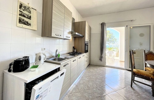 Two of the bedrooms are doubles (one with sea views), the third has two single beds and the fourth has a bunk bed. There are two bathrooms with showers. The heart of the house is the large living room with open kitchen, fireplace, TV and double sofa bed; the living room opens onto the shaded outdoor veranda, ideal for your al fresco dining. The kitchen is well equipped with a dishwasher, oven, gas stoves, fridge, crockery, cutlery, pots and everything you need to prepare your meals. There is air conditioning and ceiling fans, a washing machine and free WiFi with unlimited data.