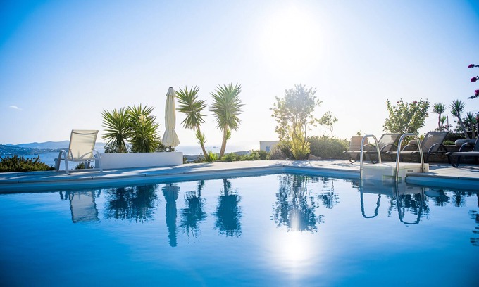 This Cycladic style traditional house (ToDipla home) is located in an amazing panoramic position within the ISLA, a private complex of three properties perched uphill from the famous Marcelo beach (1 km away) and is only 3 km away from the port of Parikia. The house enjoys access to a private terrace which offers drinking and dining with panoramic views to the Aegean Sea and the spacious outdoors. There is plenty of room for sunbathing and relaxation next to the big shared pool. All the areas of the complex, such as the barbeque area, the dining area by the pool etc, are accessible and free for common use.
