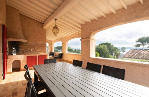 On the superb covered terrace with sea view, a lounge area and an outdoor dining room with electric plancha.