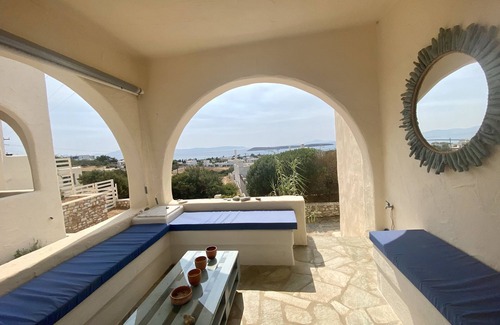 Brand new flat in quiet surroundings with breathtaking sea view over to Naxos. Walking distance to beaches, Super market, Restaurants, bars and the bus stop. Great hiking trails close by. Sleeps easily 3. Perfect patio overlooking the Sea. Paros was voted Europe's most beautiful island. The new Mykonos ( we hope not) You can get to Paros via the ferry from Mykonos or from Athens. Or you can fly via Athens on a very short flight directly to Paros airport.