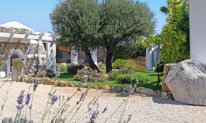 Beautiful villa with private swimming pool located in "Torre Ovo" on the north coast of Salento (Ionian side) not far from a beautiful sandy beach easily reachable on foot. Situated on a natural hillock, far from the traffic, and surrounded by olive trees, thyme, rosemary and myrtle plants, Villa La Samia enjoys a beautiful garden, a spacious terrace and several cool rooms where you can spend pleasant days in the open air, sipping a glass of the typical wine of the area "Primitivo di Manduria". The scents of the Mediterranean maquis, combined with a courteous and attentive service offered directly by the owners of the villa, will make your holiday a pleasant moment and an unforgettable memory. The house, which consists of a main body and a nineteenth century trullo (with independent access), has been renovated in full respect of local materials and construction techniques. The main house includes the living room, the kitchen, two bedrooms and a bathroom. While the trullo houses the third bedroom with private bathroom. The furnishings are simple, but in perfect harmony with the colours and style of the building and contribute to make the atmosphere of the house even more welcoming. There are all the most modern comforts, including air conditioning, Wi-Fi internet, dishwasher and washing machine. The excellent location of Villa La Samia also allows you to easily reach by car many other beautiful beaches of Salento and the famous tourist resorts of Porto Cesareo, Lecce and Gallipoli.Interior:Main Villa: Ground Floor: dining room, kitchen, 2 double bedrooms, 1 bathroom with shower. Trullo (independent access): 1 double bedroom, 1 bathroom with shower.Exterior:Veranda, terrace, outdoor kitchen, garden, swimming pool, solarium.Check-in: 16:00 - 20:00Services included: bed linen and towels, water and gas consumptions.Extra services (to pay on the spot): safety deposit euro 500 in cash, air conditioning, heating, final clearing (Euros 200).