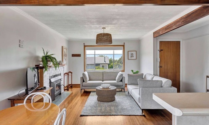 Enjoy the comfort of fully-equipped living spaces, a cosy living room and a backyard patio with a BBQ. Just a 2-minute drive to the beach and town centre, this home is perfect for relaxing getaways.