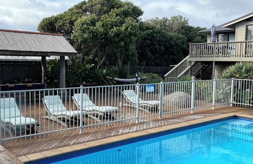 SEABREEZE@Longshore: heated swimming pool, spa, tennis court, 2 minutes to beach | House in Waikanae Beach