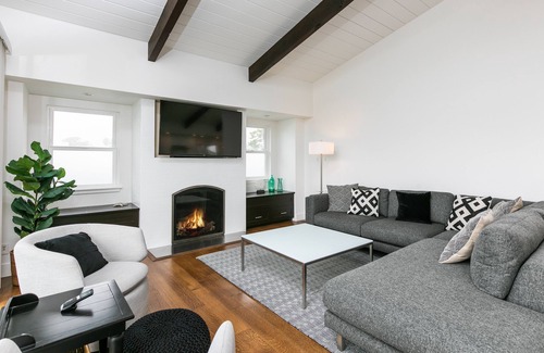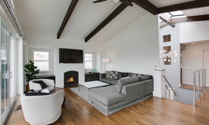 Your stay at Seacliff Beach Home will be filled with comfort and elegance, featuring a fully remodeled kitchen equipped with Bosch stainless appliances, granite countertops, and a chic kitchen island perfect for casual gatherings. The open concept design seamlessly connects the dining area, living room, and a large balcony overlooking the ocean, providing the perfect backdrop for celebrations. The home includes spacious accommodations with multiple bedrooms, two full bathrooms, and modern amenities such as a cozy gas fireplace and flat-screen smart TVs—ensuring you and your guests enjoy a delightful experience throughout your stay.