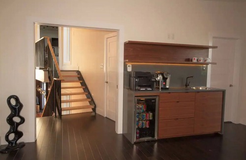 Office and Flex Level: This level includes an office with a full bath, a wet bar with complimentary beverages featuring a full suite of popular favourites such as a keurig, soda stream, Ninja Thirsti and iced cappuccinos. Guests have access to a desktop computer and printer/photocopier as well as fedex shipping supplies for all your business needs.