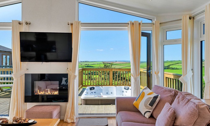 - 3 bedroom, 2 bathroom Seaside Lodge, Hot Tub, Views. Whitsand Beach, Pool, Wifi