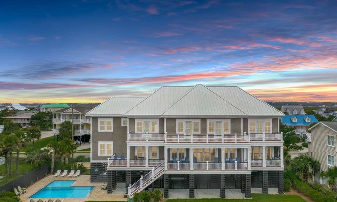 Welcome to Seaductress, an oasis for only the most discerning guests. This custom-designed, built, and decorated home is perfectly perched on the widest oceanfront lot on Garden City Beach. The amenities and luxurious finishes of this home abound, including an oceanfront private pool, elevator, gourmet kitchen, seven en-suite bedrooms, two living areas, game room, bunk room, wet bar, over-sized tile showers, granite vanities, two levels of oceanfront decks, outdoor shower, parking for 6-vehicles, and much, much more. This home is only available to families of 18 or less, which is strictly enforced. This is a smoke-free property, with no smoking allowed in the home or on any of the porches/decks or pool area.