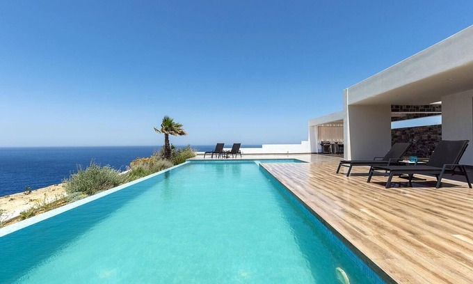 Best-rates for the Agia Pelagia villa starts from $1,146 per night with includes Balcony/Terrace, Child Friendly, Internet, Air Conditioner, View, Private Pool, Spa, Parking, Bedding/Linens, Wellness Facilities, Fireplace/Heating, Laundry, TV, Barbecue/Outdoor Cooking, Kitchen, Pool, Designated Smoking Area, Ocean View with all other amenities. Perfect for Weddings is committed to ensuring every guest experiences a comfortable and extraordinary stay, whether planning a romantic getaway, a honeymoon, a pet-friendly stay, or celebrating with the entire wedding party.