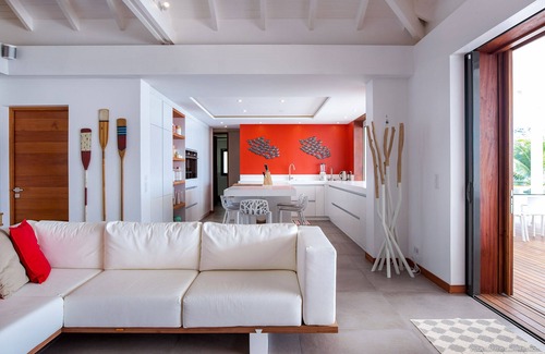 Located in front of Pinel Island, in a private gated area called "Les Terrasses de Cul de Sac" villa Mapaï is a high end exceptional villa.