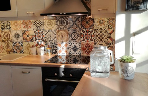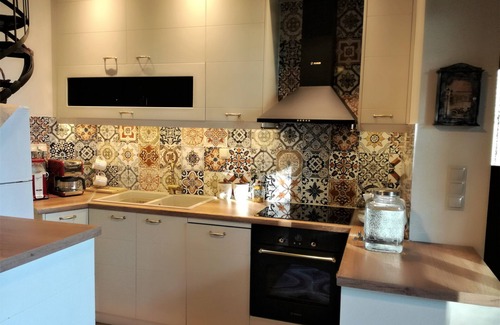 The kitchen is fully equipped with oven, coffee machine, dishwasher, refrigerator, toast maker.