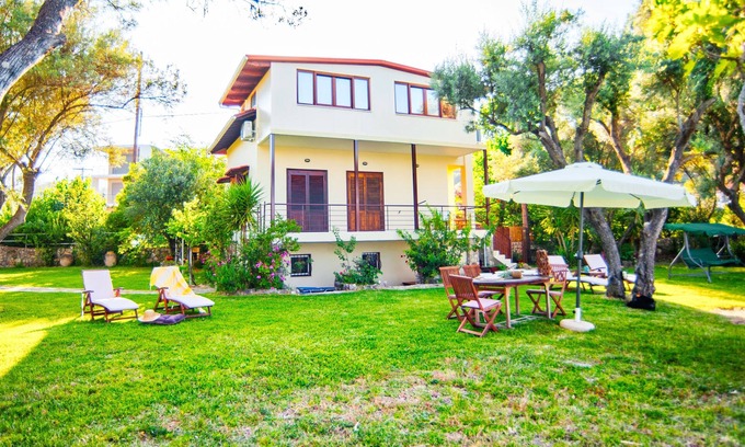 It is an independent villa with big garden where you can enjoy a beach accessible only by the guests of the house.
