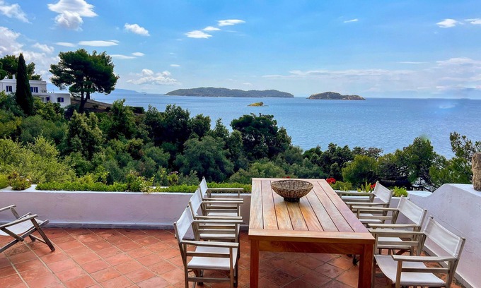 Seafront Villa with amazing view just 30 meters from semi-private beach | Villa in Skiathos