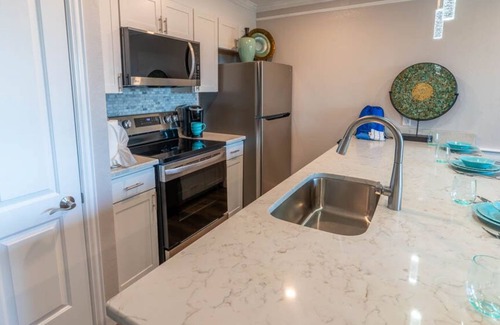 Seaglass Serenity M112 NEW IN '24 is an ideal wedding accommodation in Galveston, offering a serene retreat with modern amenities for couples and their guests. This beautifully remodeled one-bedroom condo provides a comfortable base for celebrating your special day.