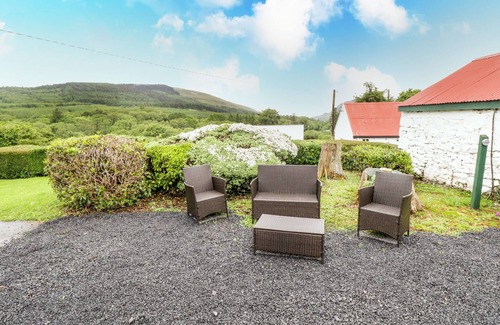 Amenities: Oil central heating with woodburning stove. Electric oven and hob, microwave, fridge/freezer, dishwasher, washing machine, TV with Saorview. Fuel, power and starter for fire inc. in rent. Bed linen and towels inc. in rent. Travel cot and highchair available. Ample off-road parking. Lawned garden with furniture. Sorry, no pets and no smoking. Shop 6.7 miles, pub 4 miles.