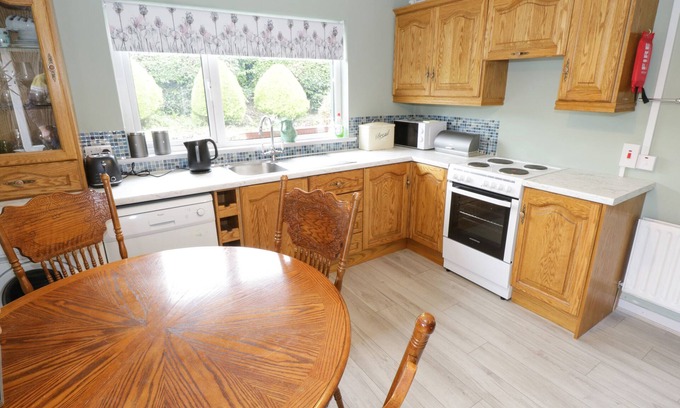 The kitchen is equipped with a dishwasher, as well as an electric kettle, cookware, and a toaster. And because there's a washing machine, you can go a bit lighter on your packing. Other amenities at this 3-bedroom, 1-bathroom rental include heating and wardrobe or closet.