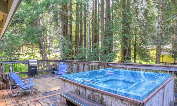 - Adorable cottage w/ocean views, redwoods, and a hot tub. Pets OK!