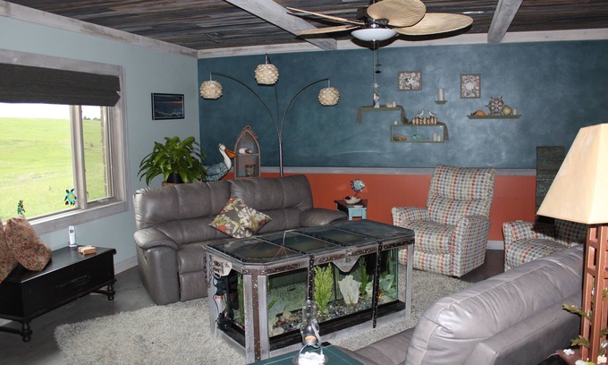 The tranquil Caribbean design coexists with the peacefulness of the prairie in this 1,700 sq. foot walkout basement NW of Kearney near Cottonmill Lake. Spacious living room and bedrooms with a large, partially enclosed patio open into the backyard for play space by day and star gazing on clear nights. Paved roads to the north end shopping center and UNK campus -- 10 minutes each way.