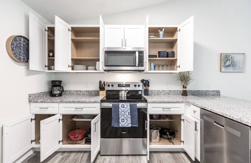 --This rental includes TWO side-by-side units within the same house. Each unit has its own kitchen with a fridge/freezer, sink, stove, oven, microwave, dishwasher, toaster oven, blender & coffee maker. Essentials like plates, cups, cookware, utensils, & paper towel will be provided for your use.