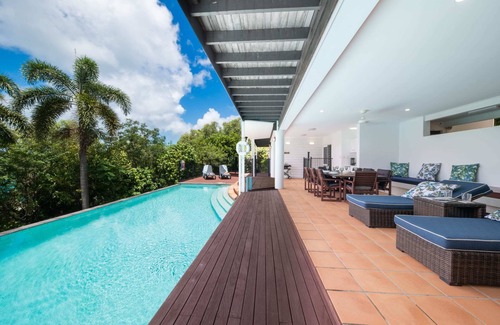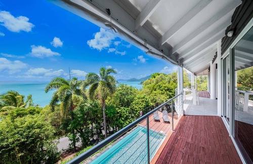 This spacious, open planned home with modern design and decor offers breathtaking views of the Coral Sea and Whitsundays, a large pool and plenty of space for entertaining and enjoying your Whitsunday Vacation.