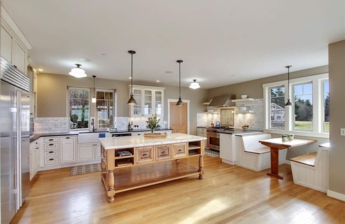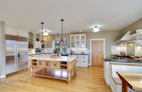- Gourmet Kitchen: The expansive kitchen boasts a large island and modern appliances, making it easy to cater to guests and facilitate group cooking activities.