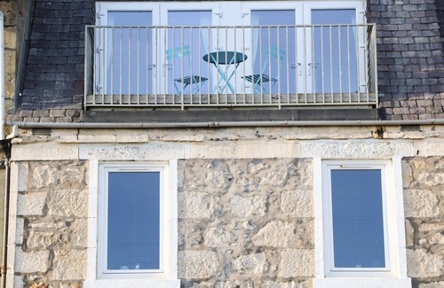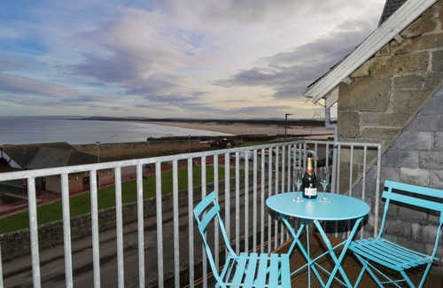 Seascape is an apartment set in the town of Lossiemouth in Scotland. It comes with two double bedrooms sharing a balcony, and a shower room, the property can sleep four people. The interior also provides a kitchen and a living/dining room with a woodburning stove, there is also a utility on the ground floor. To the outside there is off road parking for one car, roadside parking and an enclosed, shared garden with a lawn and patio area.