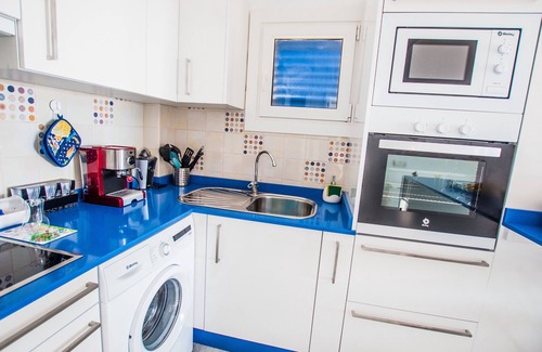 The apartment has two bedrooms. The master Suite has a double bed and enjoys an ensuite bathroom with shower whilst the second bedroom has two single beds. There is also another common bathroom with shower. The kitchen is fully equipped with oven, microwave, hob, washing machine and all the pots, pans, cutlery and utensils you may need to perfectly cook your favourite meals.
