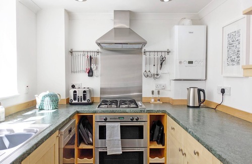 Seashell Cottage sleeps four people and includes a living room with good sized television and log burner. After a busy day of exploration or chilly walk on the winter's beach hunker down here and enjoy a hot cup of cocoa and movie - perhaps ‘Wish you here'; there will be a copy on the dresser for anyone keen to spot the scene the cottage on the big screen.