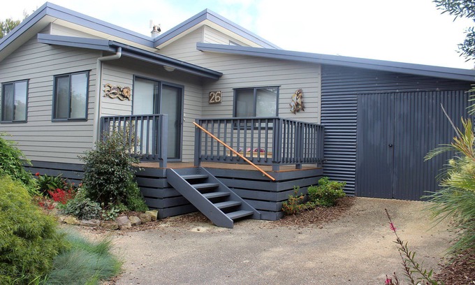 This Cape Woolamai beach house is set in a private garden is ideally located between a surf beach and swimming beach. Ideal for couples or a small family.