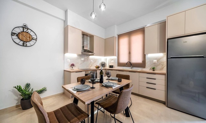 Discover a tranquil heaven in Agkisaras, just a stone's throw from Hersonissos! Our beautifully renovated first-floor apartment offers a stylish blend of modern comfort and traditional charm. With a cozy bedroom, sleek bathroom, fully-equipped kitchen, and inviting living room, it's your ideal Cretan escape. Plus, unwind on the balcony, stay connected with high-speed WiFi, keep your wardrobe fresh with a washing machine, and beat the heat with air conditioning. Your perfect getaway awaits!