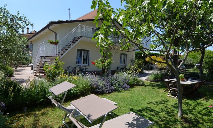 Step outside to the private garden to enjoy sun loungers, outdoor dining, and access to a shared barbecue area. The sandy beaches are just 1 km away, while watersports at Atlantica (6.4 km) and Mirabilandia (25 km) offer adventure. Fishing enthusiasts can visit Lago Felloniche 16 km away, and bicycles are available for exploring the picturesque surroundings.