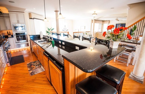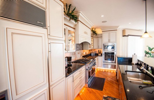 -Gourmet kitchen with 2 Bosch Dishwashers, Sub Zero Refrigerator, Commercial 6 Burner Stove, 3 Ovens and Warming Drawer, Under Counter Beverage Center and Ice Maker!