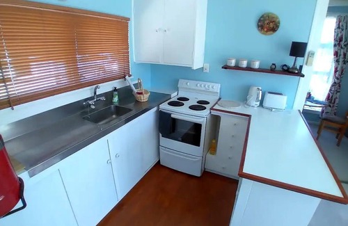 Set in friendly seaside village. Inviting log fire and electric heating. Bathroom with wall heater, vanity, shower toilet. Full kitchen with oven, separate dining area, private outdoor living. Unlimited free WiFi (up to 40-50 Mbps). 5 minute walk to ocean, 5 min walk to river trail. Sea and river fishing. Bookabach travel times wrong. Only 15 minutes to Ashburton and all amenities. Ashburton Airport Museum 15 minutes. Ashburton Domain 15-17 mins. 45 mins to Methven and hot pools. Christchurch International Airport 75 mins. Property listed elsewhere also.