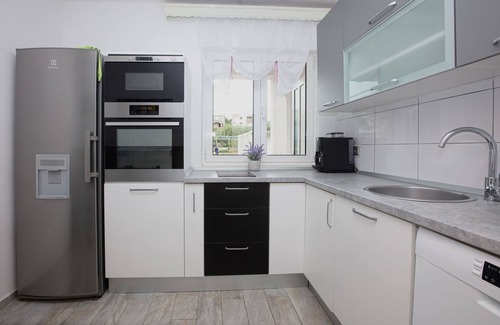 House can accommodate 12 guests. Beds are situated in 5 sleeping rooms, but also in the living room, within 106m2. Guests can use a private terrace to enjoy the warm summer evenings. For full enjoyment and relaxation there is a private barbecue for this accommodation guests only. Not all the rooms of the booked accommodation unit are connected into one whole.
