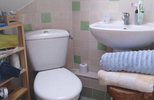 Seaside house with sea view 200 meters from Vauville beach, north Cotentin, Normandy; 3 bedrooms, 6 adults and 2 children, private parking, small garden with barbecue. Very well located, sea view on one side and on the other, on an old priory immortalized by Millet. You can hike on the coastal path or walk to the surfing beach or take a swim in the sea and contemplate it . We can see the Channel Islands when the visibility is good and horses, cows and sheep are in the fields all year round.