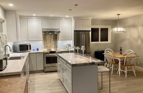 The kitchen is bright, spacious, and fully equipped for preparing a simple snack or a gourmet meal. The dining area is adjacent to the kitchen and easily accommodates 6 people. Books about the area, local magazines, and card and board games are provided for your enjoyment. The living room opens onto a deck to enjoy morning coffee or an afternoon glass of wine. The backyard offers a ping pong table and a spacious brick patio with outdoor dining and grill available.