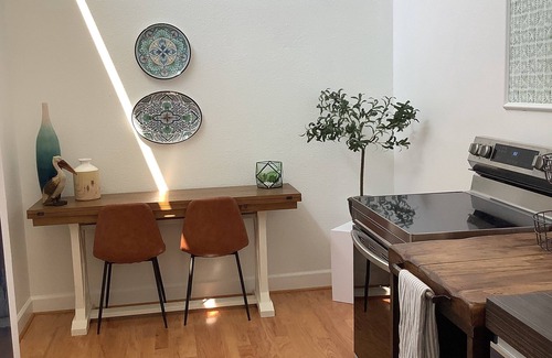 Seaside Serenity sleeps 8 guests - all of whom will have ample space with 4 queen sized mattresses. This relaxing home can easily accommodate large families or 4 couples vacationing together. Due to the abundance of natural light from the panoramic windows and high ceilings, the house has an expansive and airy feel. The ambiance of the home is sleek and clean with an open concept living area, dining area, and kitchen with bar seating. The deck off of the living room is expansive with beautiful views of the Gulf of Mexico, and a large covered area for outdoor dining and relaxation. In addition, there is a covered entertaining space with a finished deck on the lower level with great views of the beach. The yard off of the deck is over-sized and perfect for outdoor games and activities. There are kayaks and beach toys in the garage for you to enjoy. The living area features a flat screen TV for your viewing pleasure, along with a new queen-sized sleeper sofa and two new (April '23) swivel glider chairs, and the home is wifi friendly. The kitchen features ample counter space, cooking utensils, dishes, and flatware along with Keurig and regular coffee machines. This includes a brand new (May 23) 5-burner range with a large oven. The master bedroom has a queen bed with nearby bathroom. The second bedroom has 2 queen sized beds and an ensuite bathroom. Coffee pods and sweetener are provided for you, along with dog bowls (small & large), and a crate for your furry friend's comfort if you choose to bring him/her! This is a great place to relax on the deck, play on the beach, or make the short trip to see all that downtown Galveston has to offer!