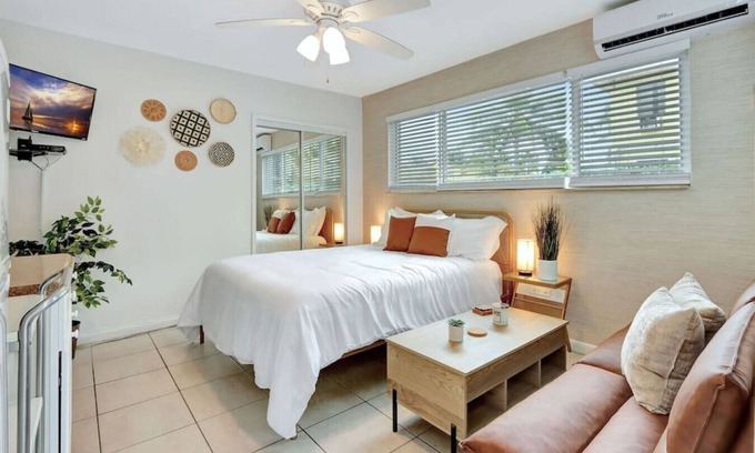 Seaside Serenity Hollywood Studio Escape is an ideal wedding accommodation, providing a charming retreat just moments from the beach. This cozy studio offers everything you need to create lasting memories on your special day.