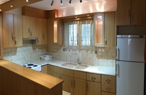 The apartment lies on the lower space of a three independent houses complex with garden and pool, in a quiet neighborhood. It's very cool during the summer months in Greece.