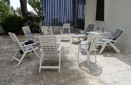 We rent independent villa in Puglia about 200 meters from the sea. The location is called “Torre Ovo” , 5 km from Campomarino. The villa is 110 mq, the apartment consists of three bedrooms double / twin room (6 beds with possible addition further bed), kitchen, living room, 2 bathrooms, shower both internal and external, large veranda and garden of 400 mq with large tree fig. Garage and outdoor parking. Newly renovated, well-appointed. It 's visible to the coordinates: