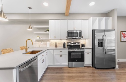 Each two-bedroom unit offers over 1,050 square feet of thoughtfully designed space, featuring brand new furnishings, high-speed Wi-Fi, a full kitchen, washer and dryer, and access to an outdoor pool and fitness center. Up to 2 dedicated parking spots are included with your stay, with additional parking available upon request.