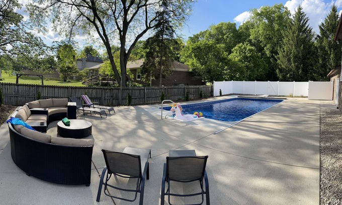 Newly renovated 4 bedroom, 2 1/2 bath home - sleeps 10. Home is located on a quiet, suburban lot with an outdoor pool (available May through September), indoor hot tub, and tiki-bar. Additional amenities include game room with pool table, fireplace, hi-speed internet with dedicated workspace, and sizeable yard wtih outdoor patio and dining space. 20 minutes to Downtown Indy and Lucas Oil Stadium. 30 minutes to Indianapolis Motor Speedway.