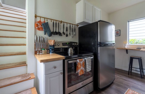 The well appointed kitchen invites you to whip up a gourmet meal or enjoy a delicious takeout from all the nearby eateries.