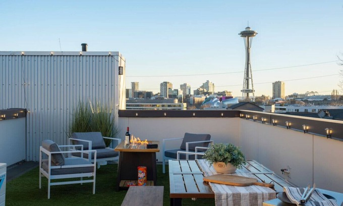 Stay in the heart of Seattle at this luxurious 3 bed / 2 bath modern retreat. Designed with modern decor, and luxury finishes and appliances, this home sleeps 6 guests and offers a warm, inviting ambiance. Enjoy the stunning rooftop deck with unobstructed views of the Space Needle, and the Seattle skyline, complete with a fire pit and BBQ. Located just a short walk from vibrant bars, restaurants, and top attractions, this is the perfect base for exploring the city in style and comfort. 🚀✨