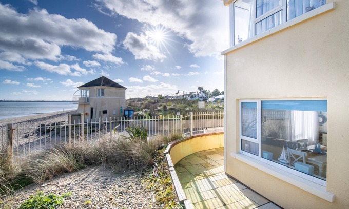 A beautiful modern two bedroom apartment on the beach front in Rosslare Strand, Co. Wexford has a patio area with garden furniture and beautiful sea views.