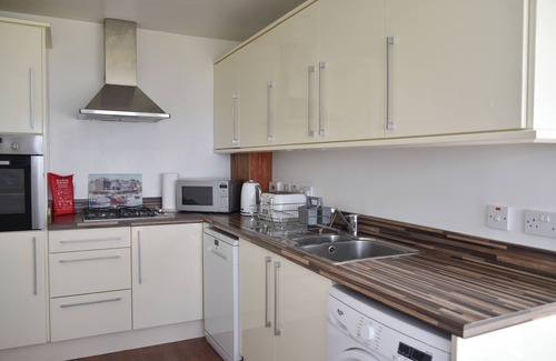 Downstairs - fully equiped modern kitchen, dishwasher, fridge/freezer, washing machine, kettle and toaster. There is a 6 seater dining table ideally placed for taking in the beutiful sea views, while eating a relaxing meal, or relaxing with a cuppa or glass of wine while dophin spotting.