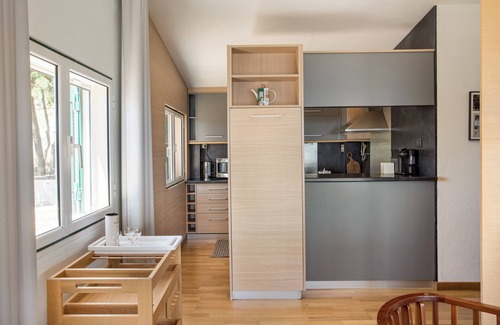 The kitchen is equipped with an oven, a stovetop, and a refrigerator, as well as a coffee maker, an electric kettle, and a microwave. Bathroom amenities include a hair dryer, a bidet, and towels. And there's access to laundry facilities, so you can even pack a bit lighter. Other amenities include a BBQ grill, bed sheets, an ironing board, and heating.