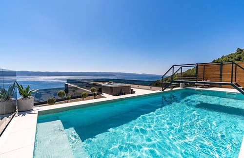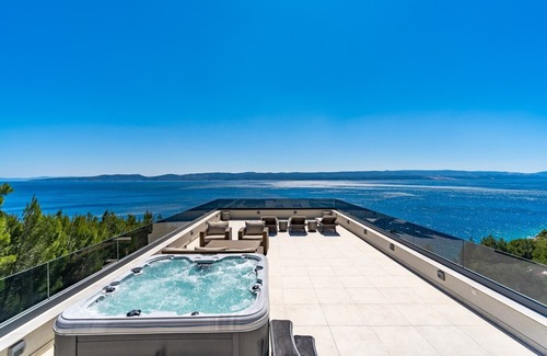 Brand new Villa Blue Lagoon is on offer from season 2021 and it is fully equipped with all the amenities a modern guest needs for his relaxed and well-deserved vacation. It is fully air-conditioned, with free WiFi, PS4, 2 fully equipped kitchens, and two living rooms, and all offered are organized on 3 levels (floors) with a heated pool and 2 jacuzzies on the rooftop with amazing sea views. The villa itself is easily accessible, and the last 150m is a white road, absolute privacy at the property is guaranteed. There are 5 parking places secured in front of the property.