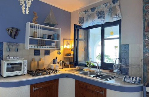 The villa with a large patio overlooking the sea has 2 independent bedrooms with bathroom, a kitchen and a barbecue area. Internally there is a staircase that leads to a private portion of the sea and accessible from the few adjacent villas. Available on site, upon reservation, two sup / kayaks, new, useful for exploring the coast of the protected nature reserve of Capo Zafferano. Beaches and lidos at a distance of 500m and the nearby city of Bagheria with all services. Enchanting and peaceful place.