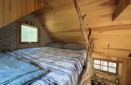 Queen size bed in the loft,Being able to climb a ladder essential to access the sleeping loft.